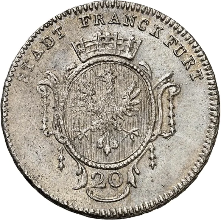 Eagle in crowned cartouche, 20 below.