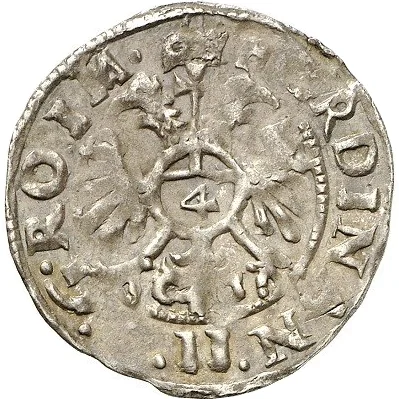 Imperial eagle with crown, orb on breast, titles of Ferdinand II.