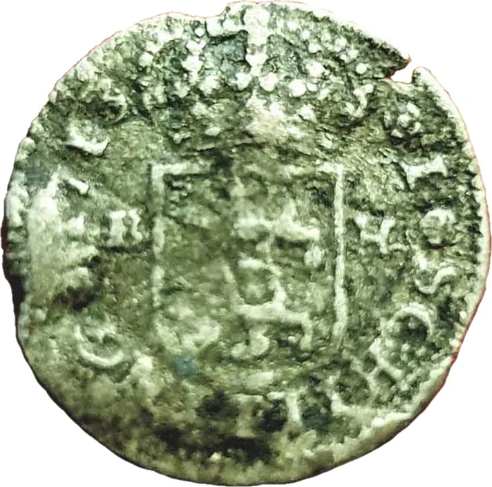 Schleswig arms crowned in Spanish shield, flanking mintmaster initials.