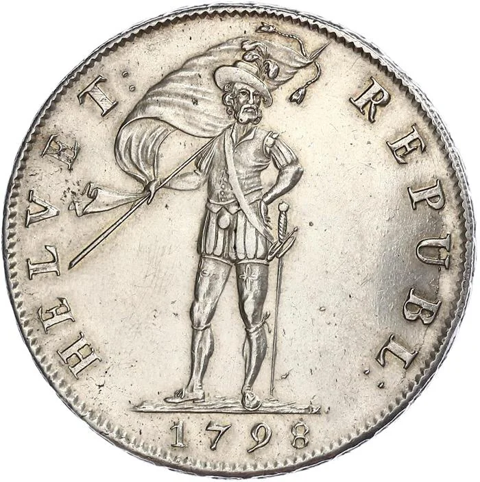 The Helvetic Republic, proclaimed in April 1798, was a French sister republic imposed upon the Swiss Confederacy following its invasion by French Revolutionary forces. This radical, unitary state replaced the ancient decentralized patchwork of cantons, subjecting it to a centralized administration modeled on France. This political upheaval directly precipitated a severe currency crisis, as the new republic inherited a chaotic monetary landscape with over 800 different coins from foreign and domestic authorities in circulation, alongside a plethora of cantonal banknotes.
