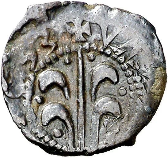 Beaded circle with a tree “arbor ad modum floris,” topped by a cross. Legend and date encircling.
