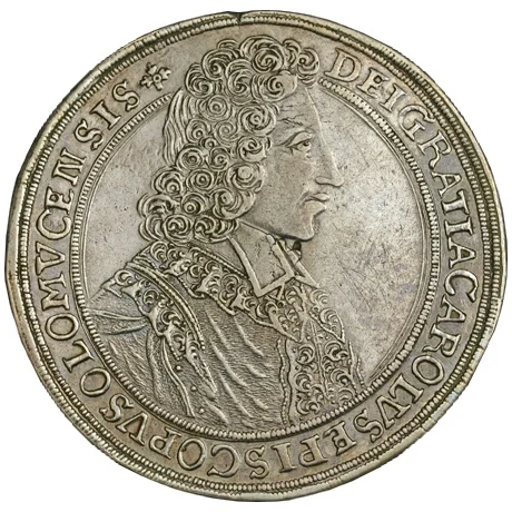 Bust of Karl III Joseph of Lorraine right in dotted circle. Legend "Dei Gratia Carolus Episcopus Olomucencis" divided above.