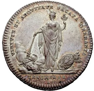 VIRTVTE ET AEQVITATE PACATA GERMANIA