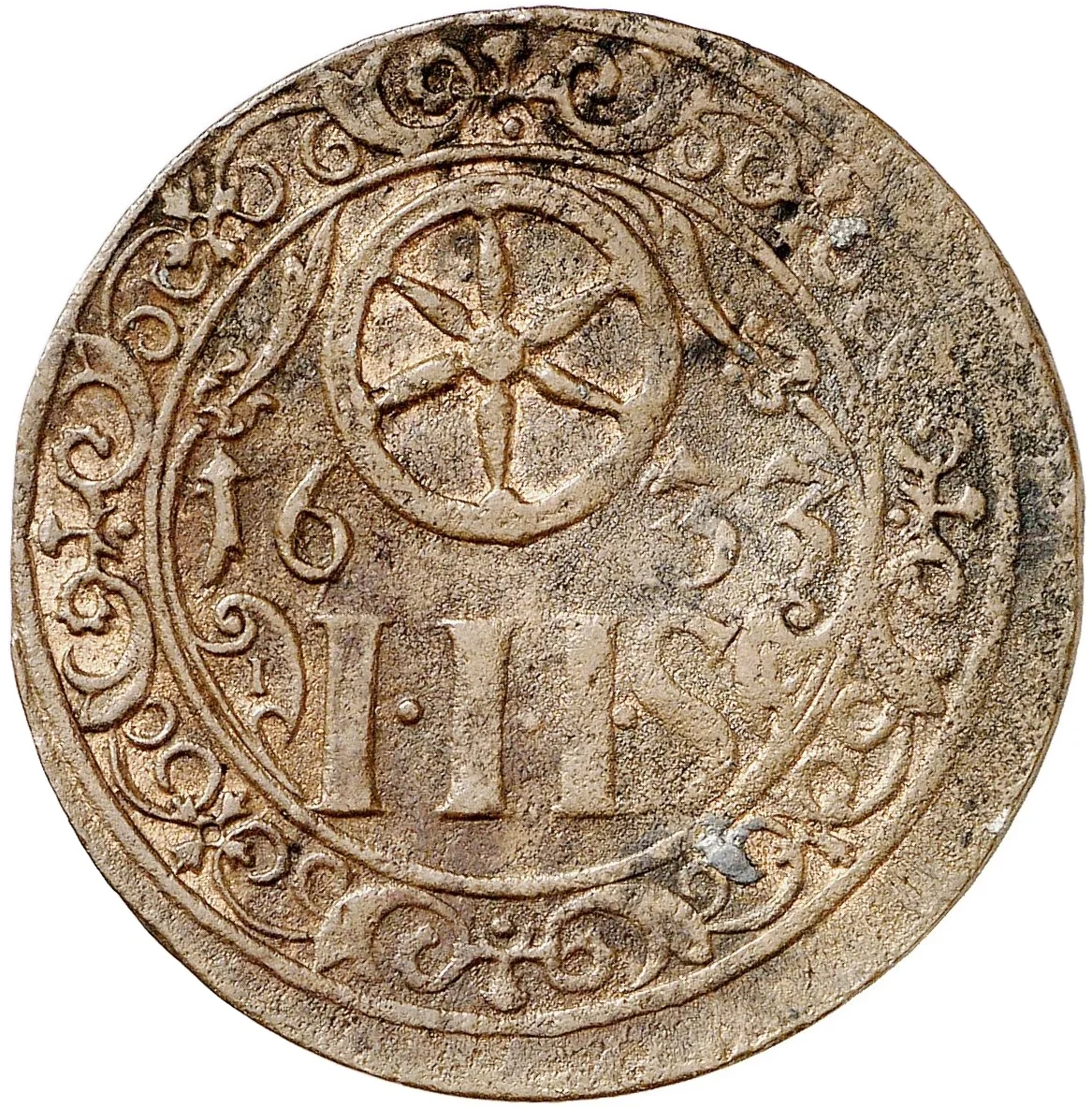Shield of Osnabrück arms, date above value I.I.I. S., within ornamental border.