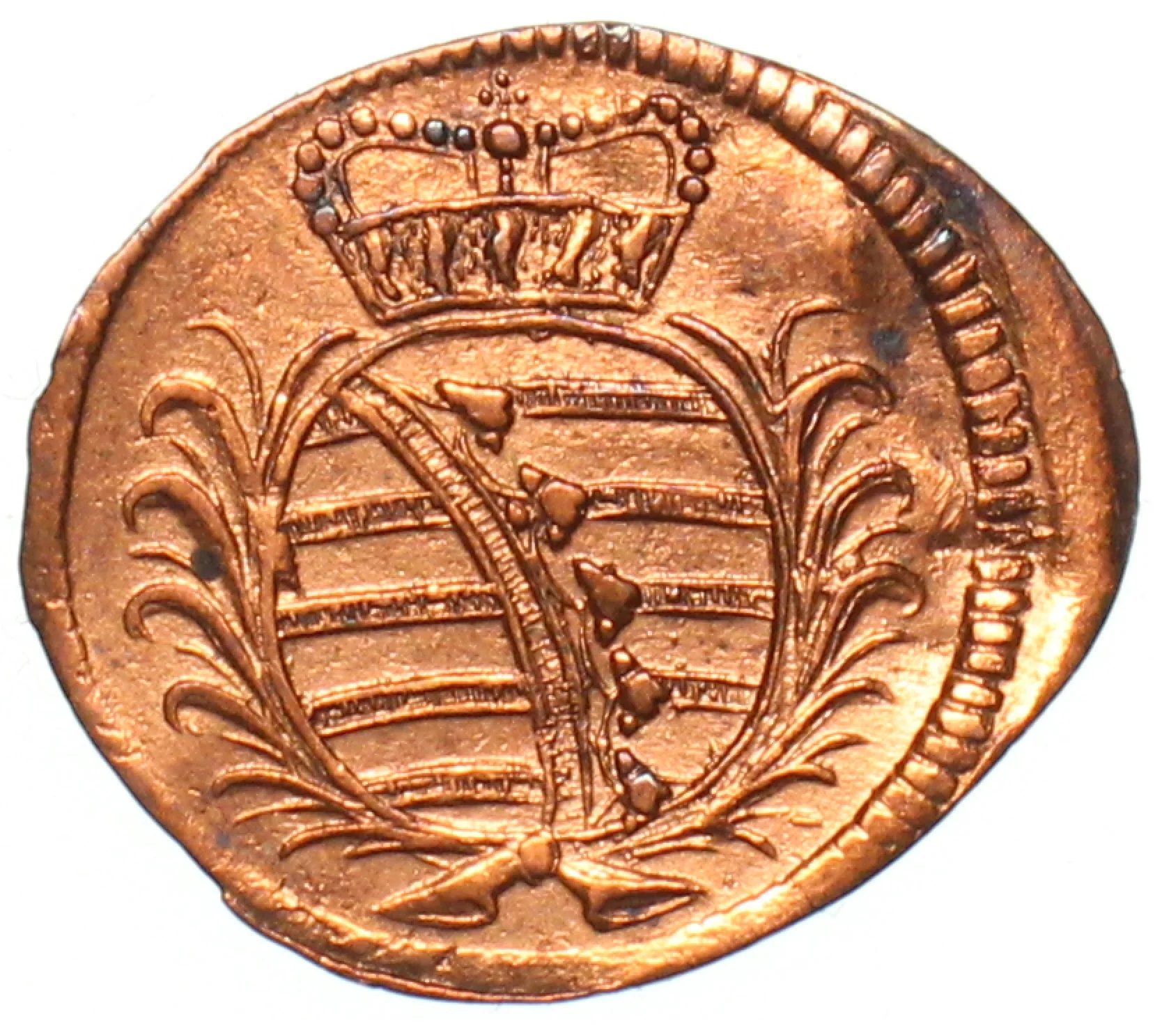 Saxony ducal arms on a crowned oval shield between branches.