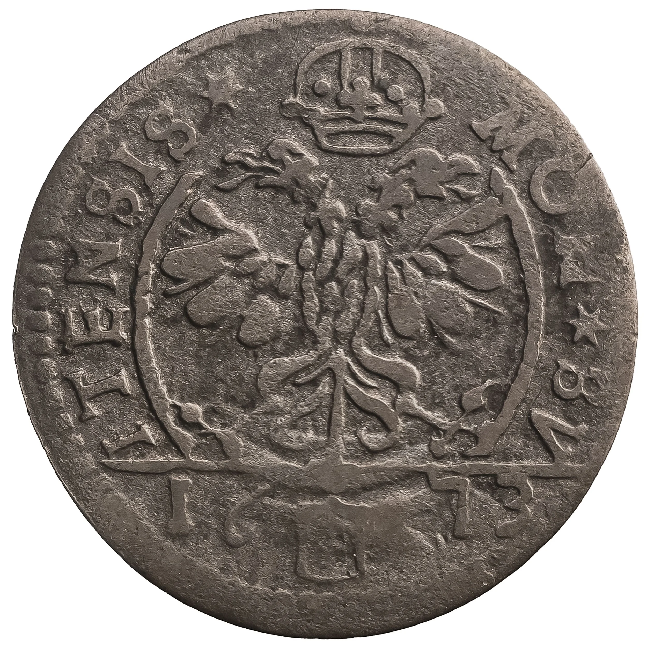 St. Martin with sword and crozier in circle. Legend often shortened (symbolized by a 9).