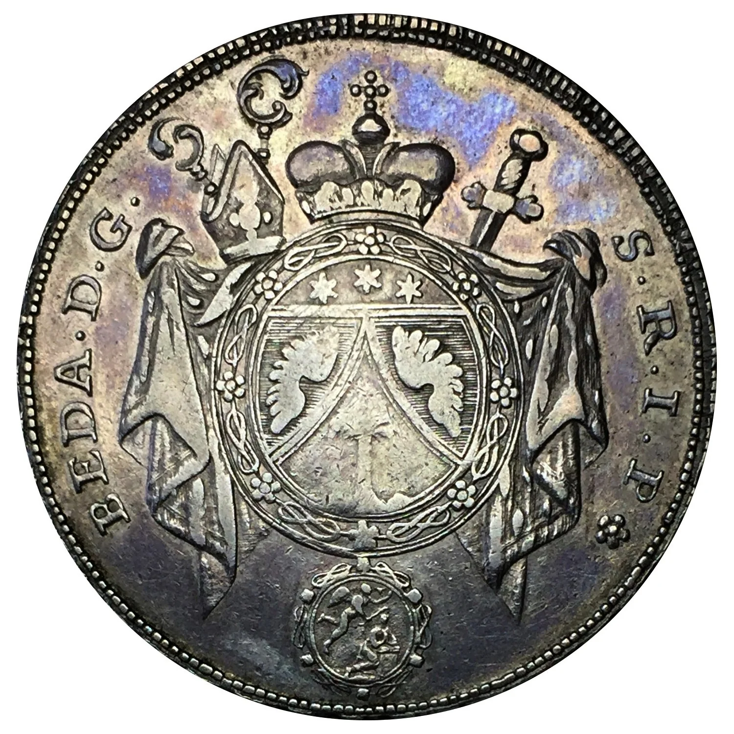 Crowned and mantled coat of arms.