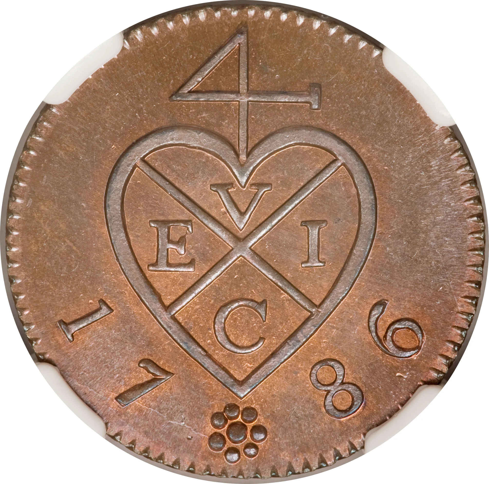 United East India Company 4-mark. Dated with central flower. Toothed border.