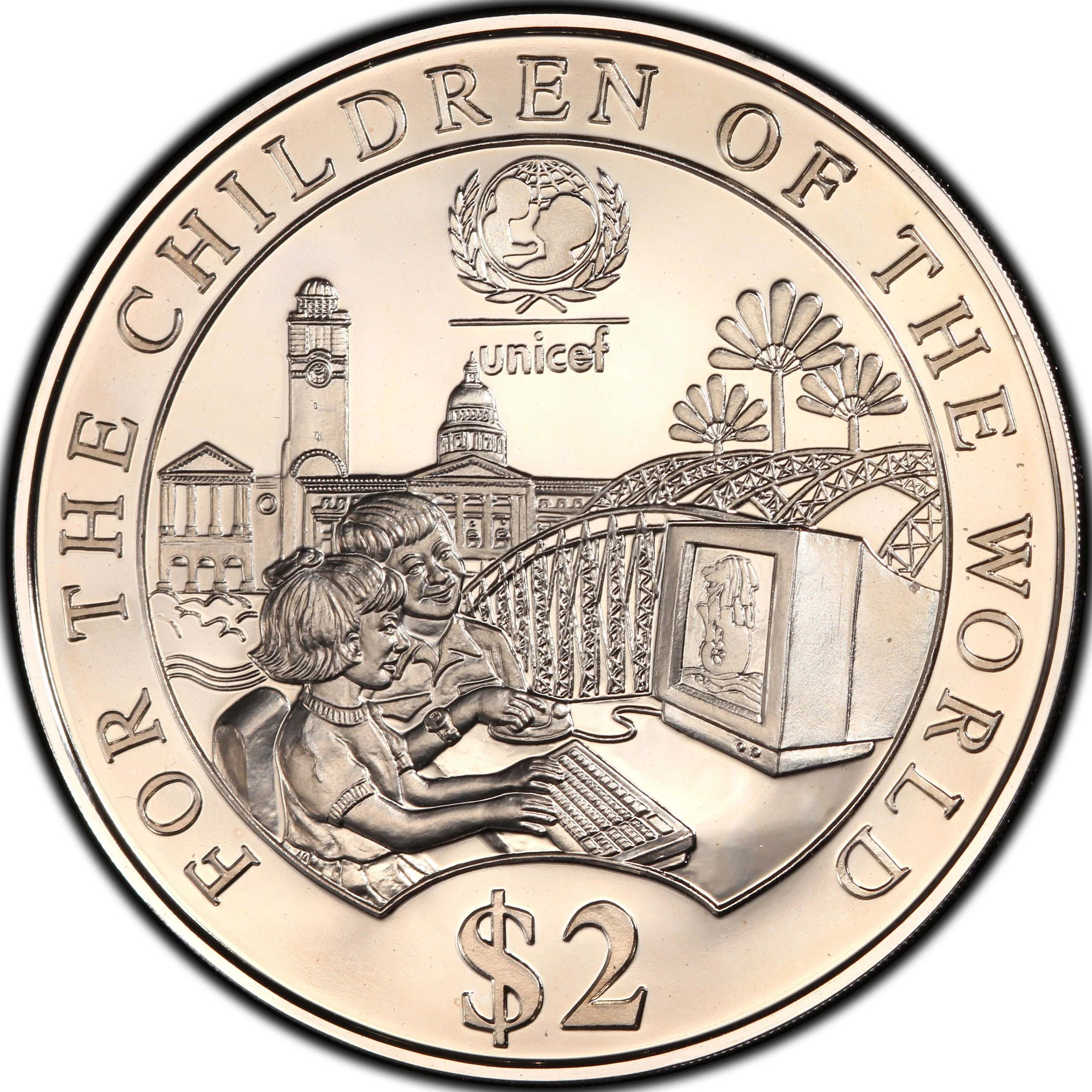 Children at a computer with a building behind. UNICEF logo above, text around, value below.