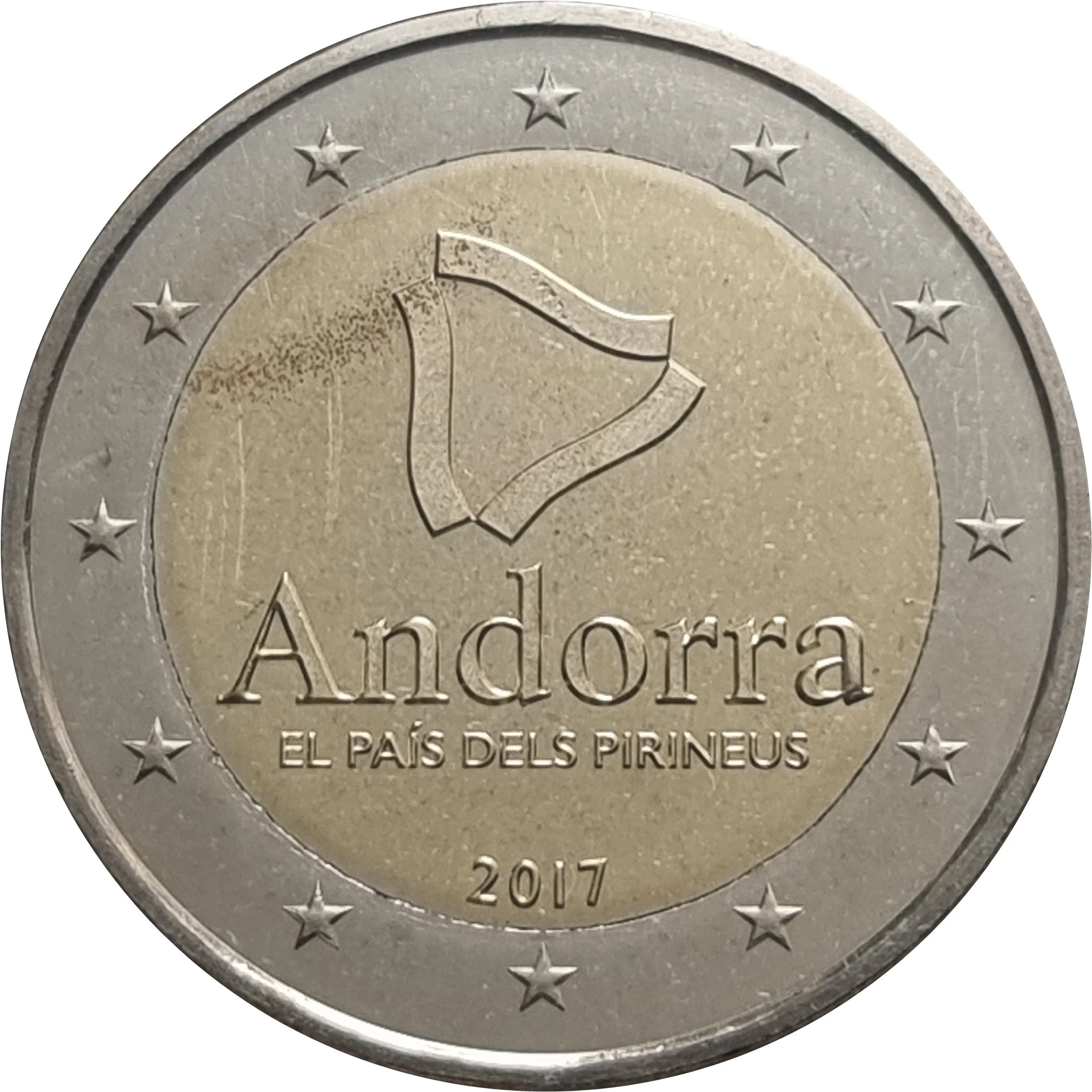 Description: A triangle of three undulating strips, a simplified map of Andorra, forms the government brand for unified and instant identification. The coin's outer ring features the twelve stars of the European flag.