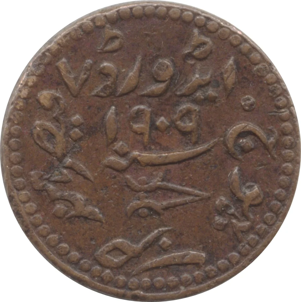 Urdu legend in outer margin: 'Edward VII kaisar Hind, zarb Bhuj', year, and a central dagger.