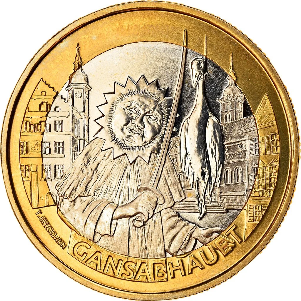 A sword-wielding, sun-masked figure prepares to cut a goose from a rope in Sursee's old town.