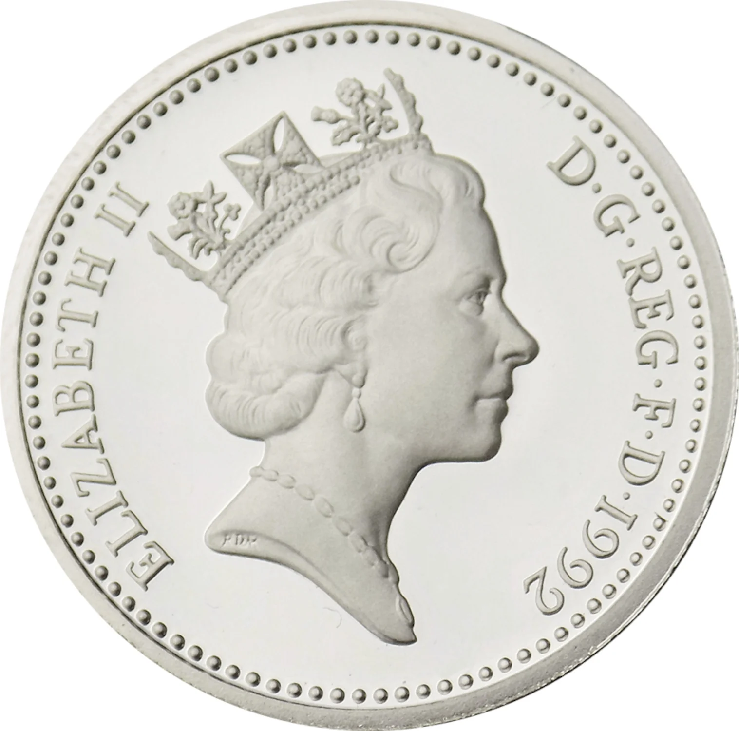 Third crowned portrait of Queen Elizabeth II facing right, wearing the George IV State Diadem.
