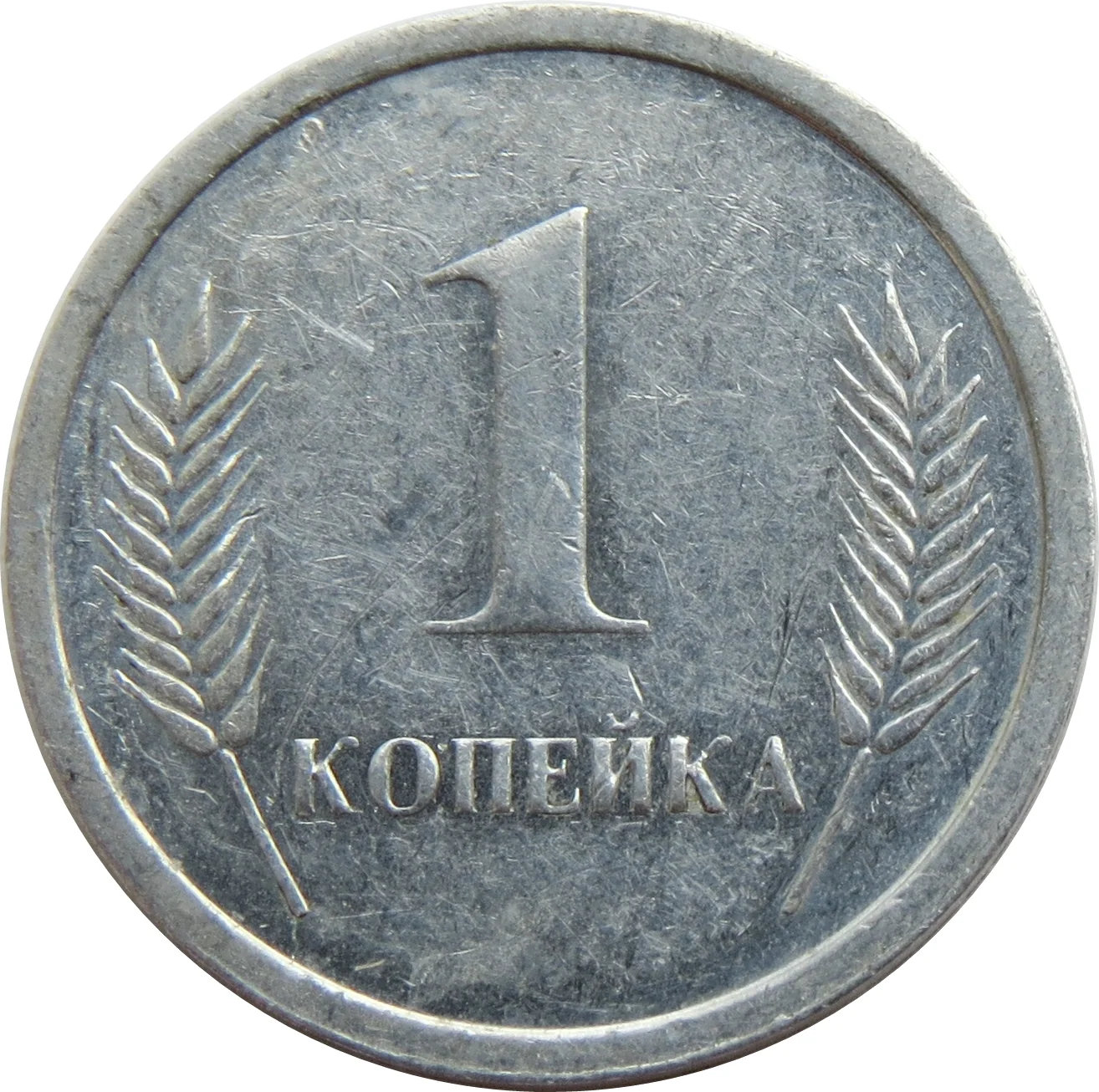 An embossed "1" framed by wheat ears, with "КОПЕЙКА" below.