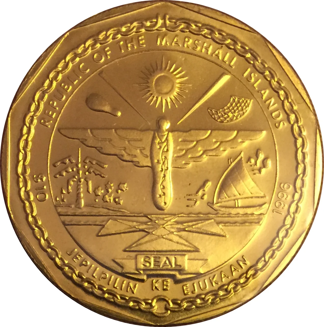The national coat of arms of the Marshall Islands.