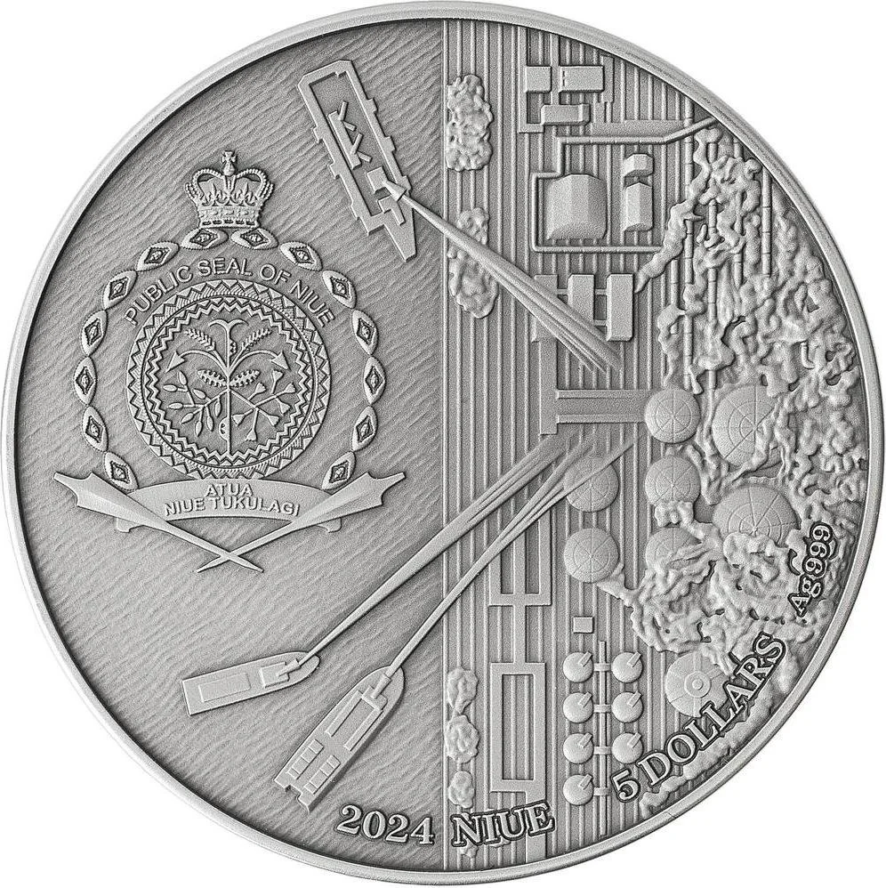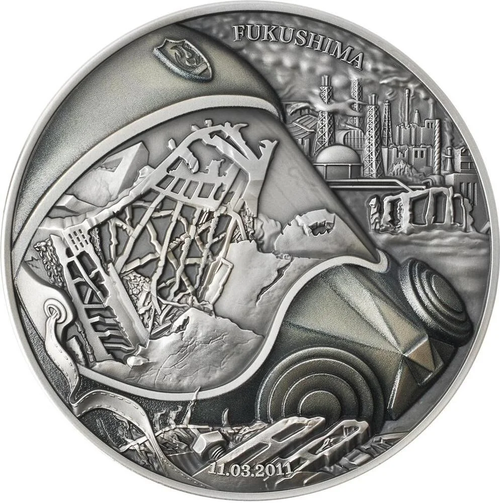 Description: A nuclear plant worker's helmet from the 2011 containment efforts. Its visor reflects a chaotic mosaic of shattered pipes and broken infrastructure, while cooling towers emit thick, dark smoke in the background, symbolizing irreversible damage.
