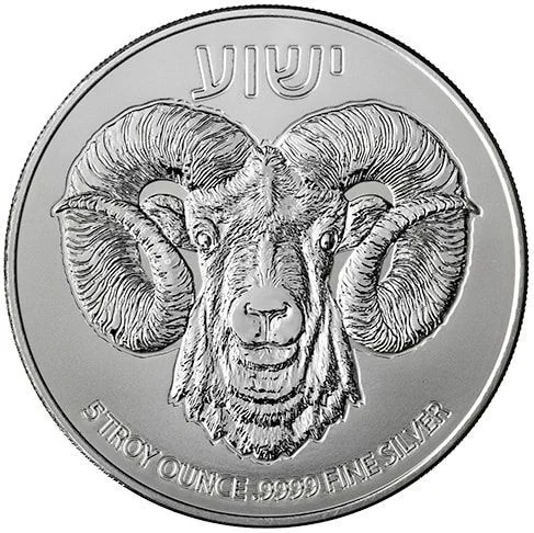 Ram of Calvary. Left horn: Hebrew text above, metal details below.