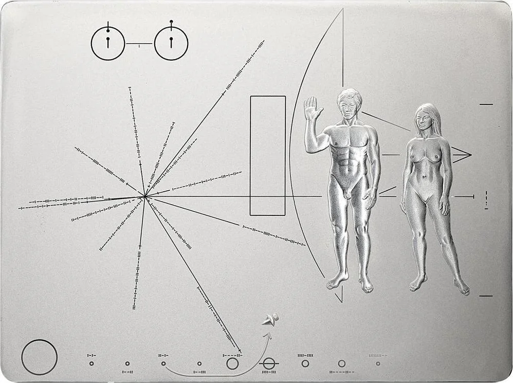 Pioneer plaque on Pioneers 10 and 11.