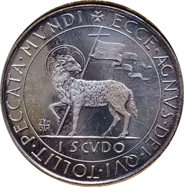 Paschal lamb, denomination below, circular legend.