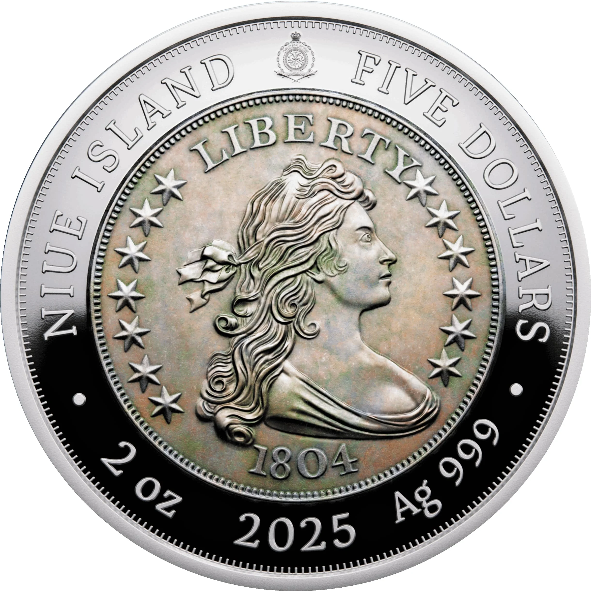 Coat of Arms featuring the 1804 Draped Bust Dollar.