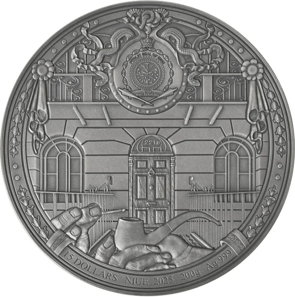 221B Baker Street door bearing Niue's Public Seal.