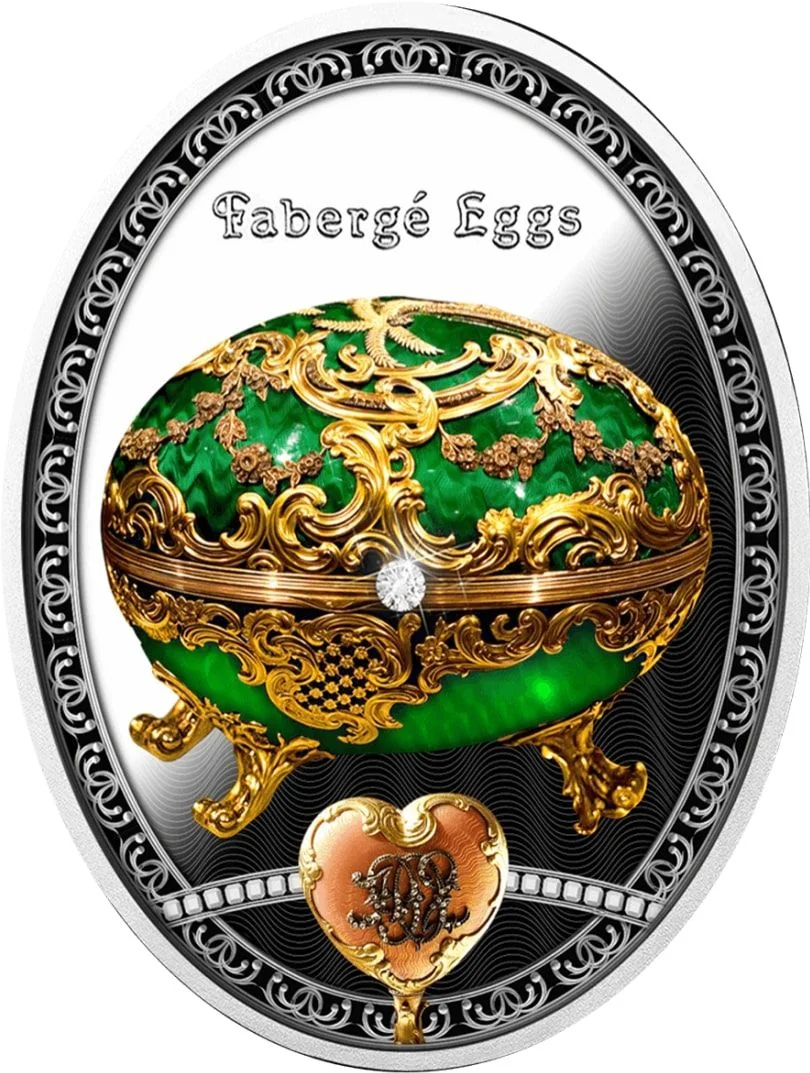 "Spring Flowers Egg" (1899-1903) features a miniature basket and anemone bouquet with a coat of arms.