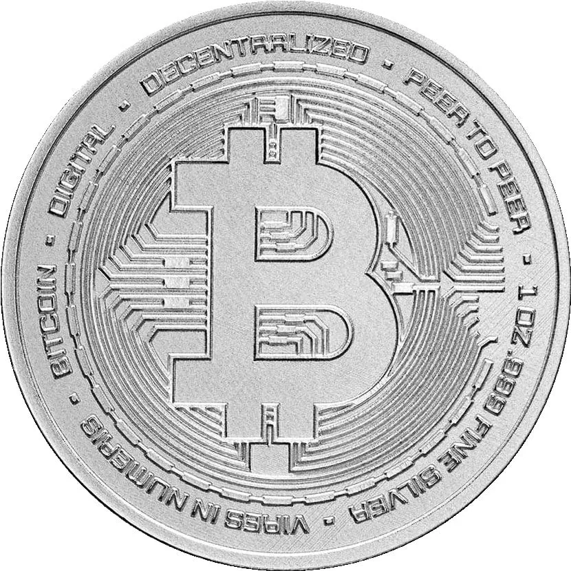 DECENTRALIZED · PEER TO PEER · 1 OZ.999 FINE SILVER · VIRES IN NUMERIS · BITCOIN · DIGITAL ·