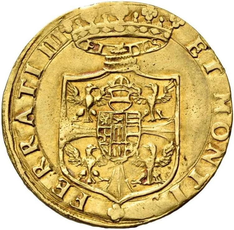 Shield quartered, with a central nine-part shield, crown, and small Mt. Olympus above.