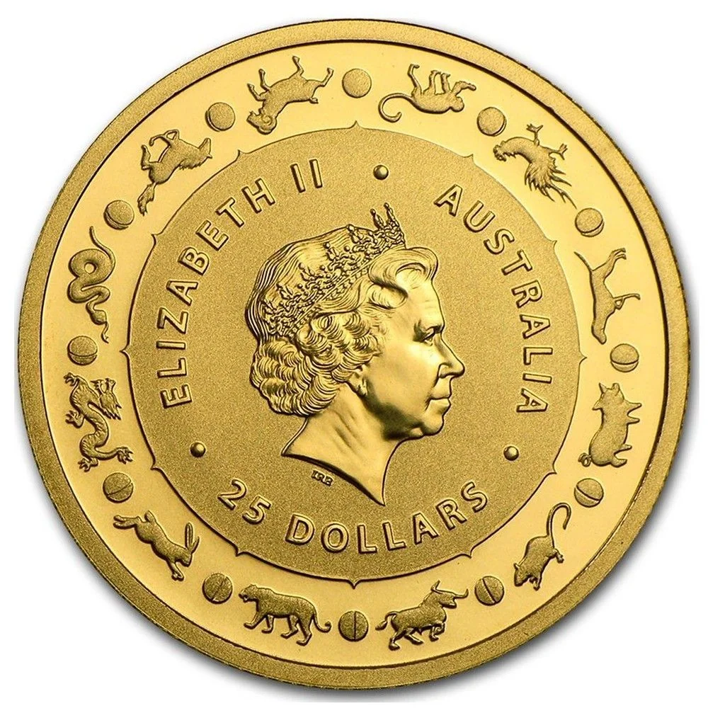 Queen Elizabeth IV facing right in the Girls of Great Britain and Ireland Tiara, encircled by the twelve Chinese zodiac signs.
