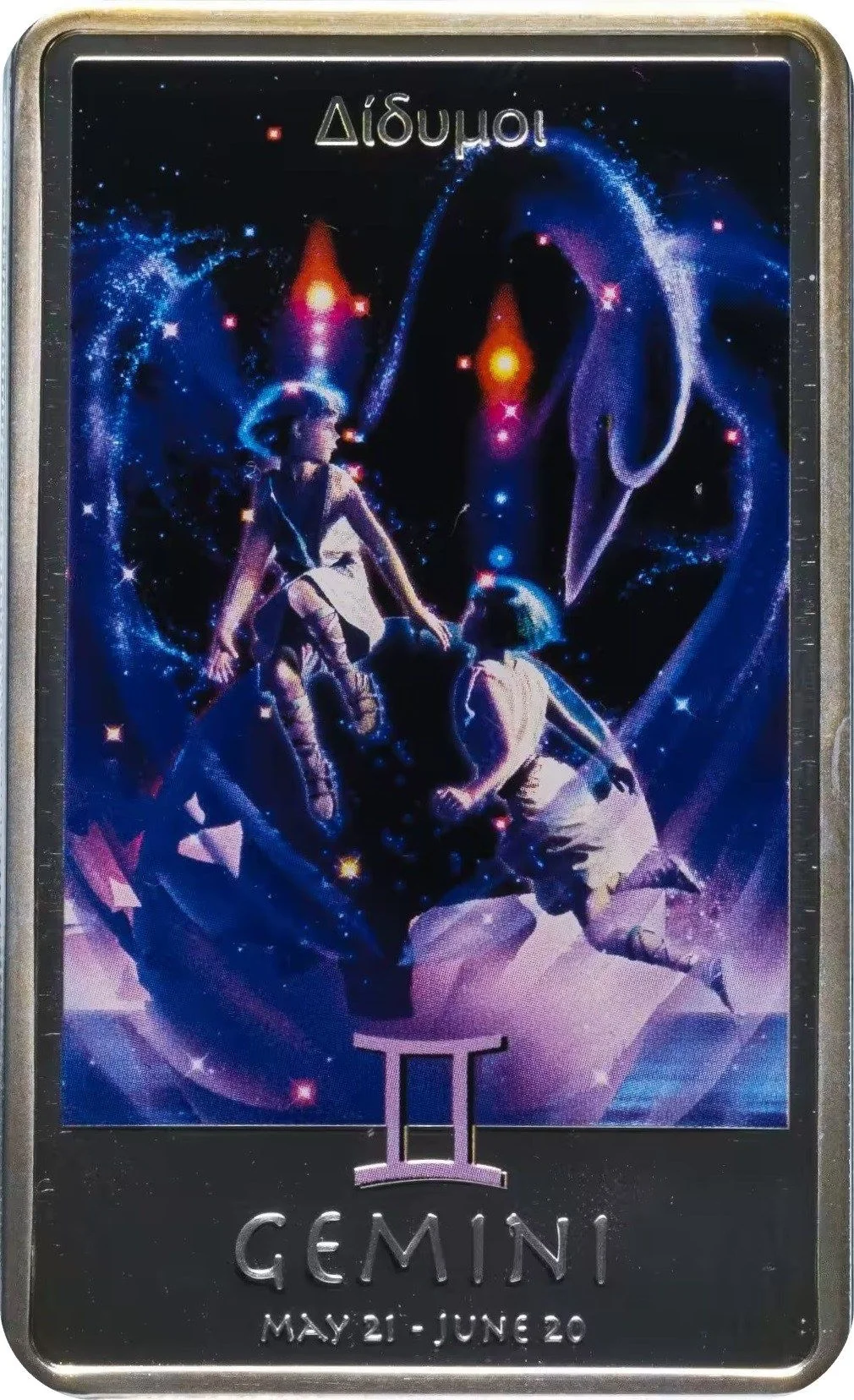 Bust of Elizabeth II right, above value, date, and metal details. Zodiac symbols encircling.