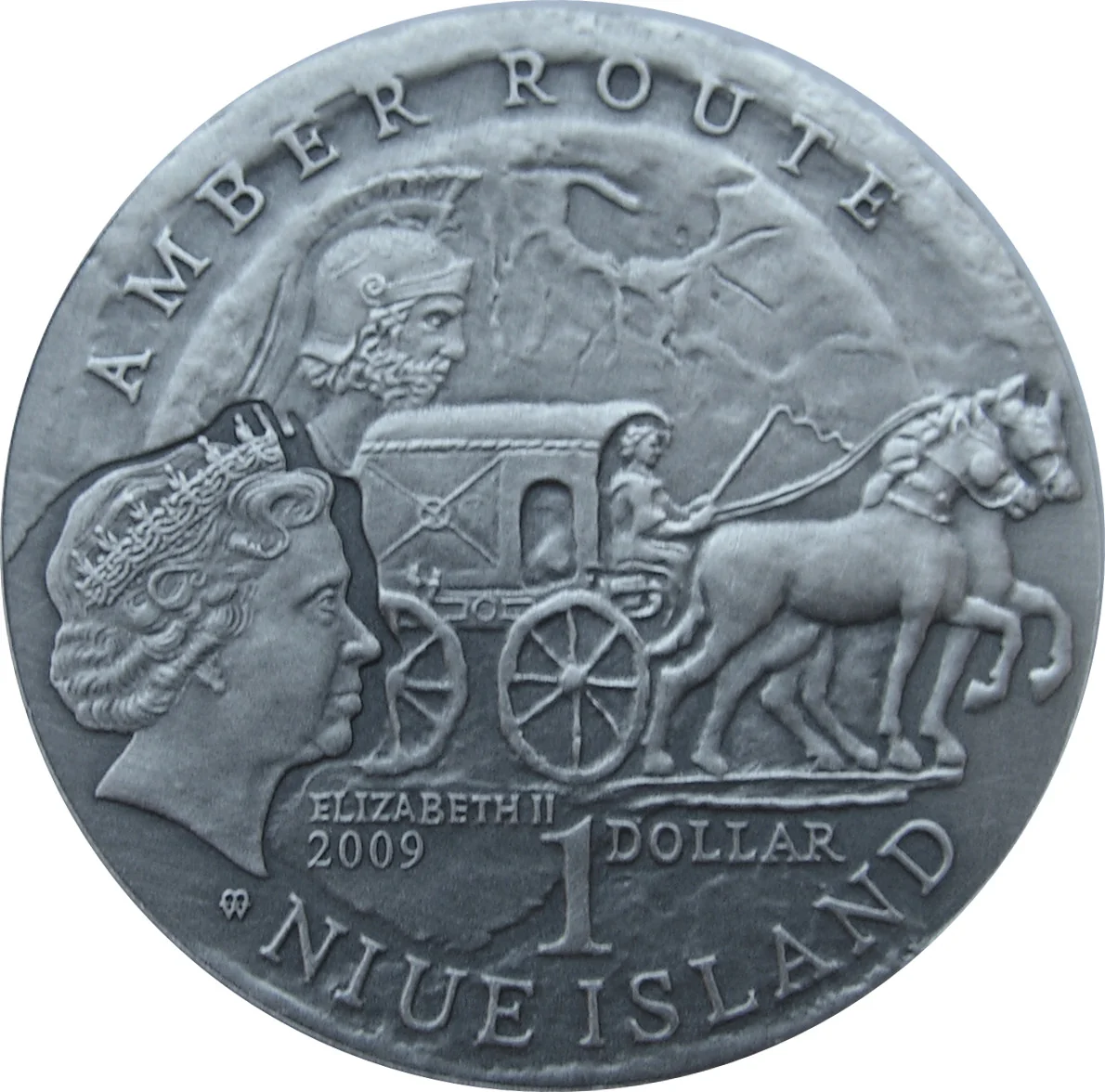 Elizabeth II bust right, date, value, horse and wagon at right.