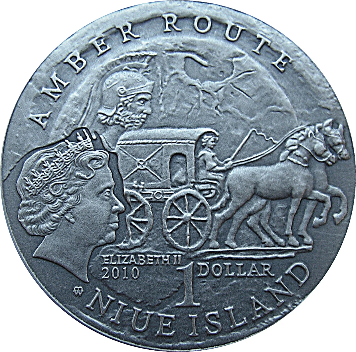 Elizabeth II bust right, date, value, horse and wagon at right.