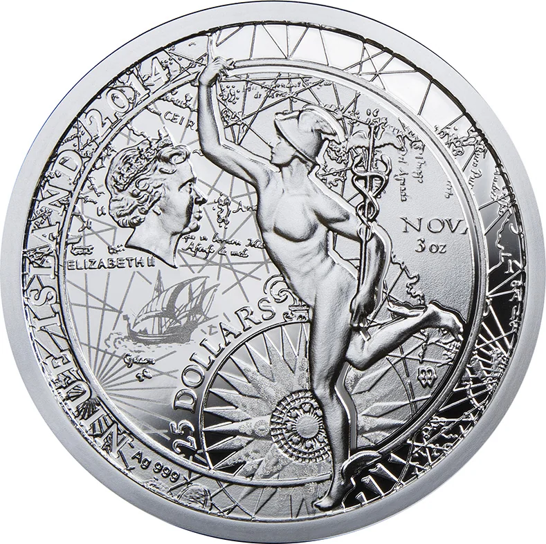 Queen Elizabeth II’s effigy with Mercury, god of commerce and travel.