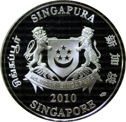 Emblem with date; 'Singapore' encircles it in English, Tamil, Chinese, and Malay.