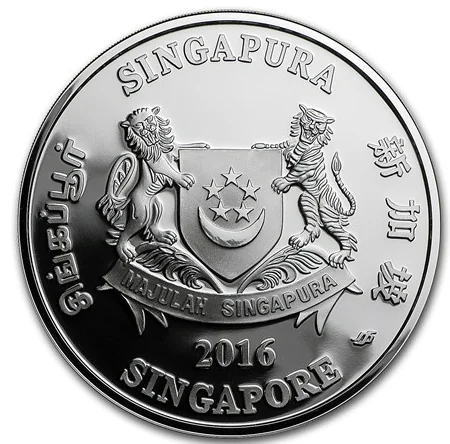 Emblem with date; 'Singapore' encircles it in English, Tamil, Chinese, and Malay.