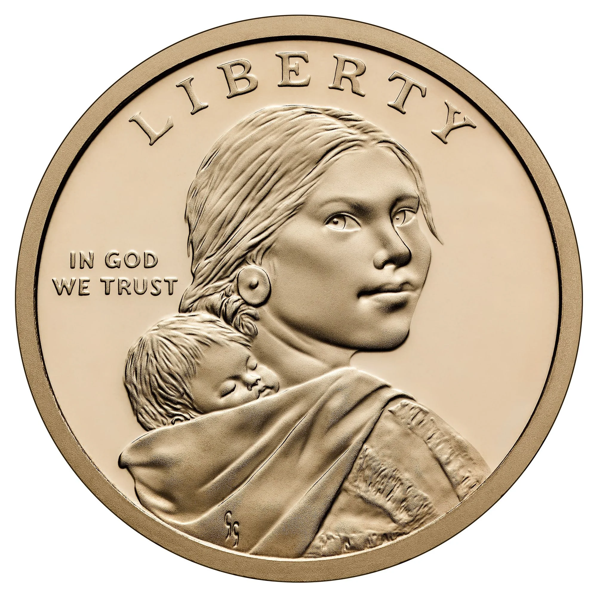 Sacagawea facing right, carrying her infant son Jean Baptiste.