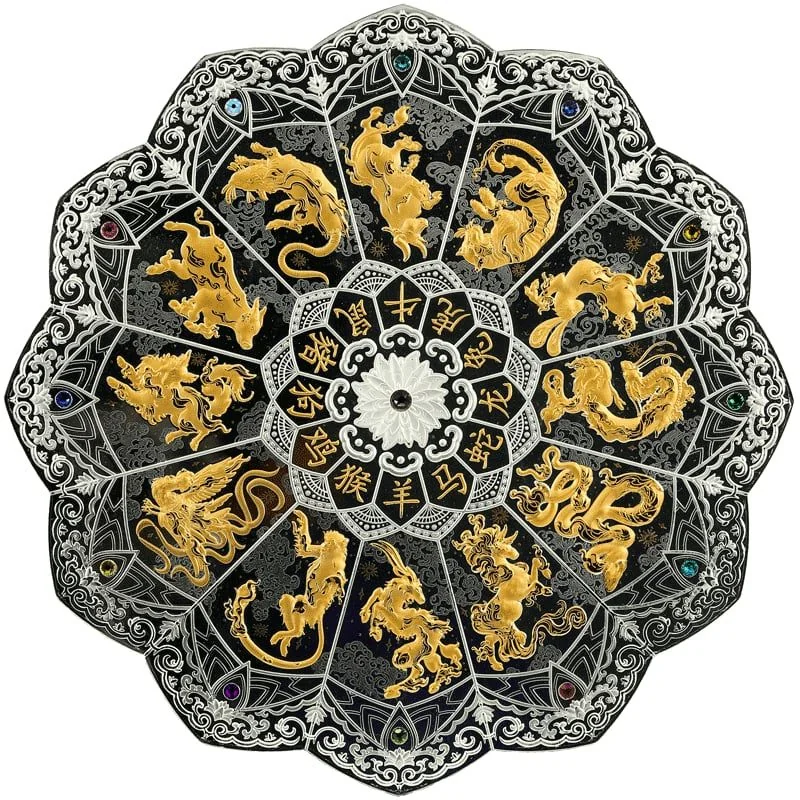 Description: Featuring the State Emblem of Belarus and REPUBLIC OF BELARUS above, the center shows the Jade Palace in clouds with CHINESE CALENDAR. Flanking sides note the alloy standard and minting year, with 1,000 ROUBLES below.
