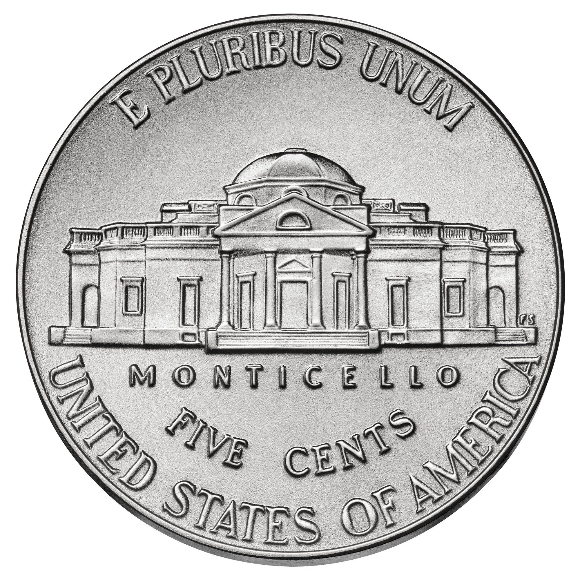 Monticello, Thomas Jefferson's Virginia home, with "MONTICELLO," the face value, "E PLURIBUS UNUM," and "UNITED STATES OF AMERICA."