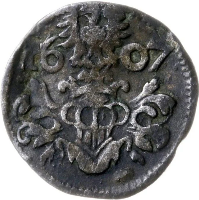 Crowned ornate great helm with a Silesian eagle above a four-digit date.