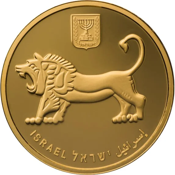 Israel's emblem features a roaring lion from an 8th-century BC seal of Shema, servant of King Jeroboam II, with "Israel" in English, Hebrew, and Arabic.