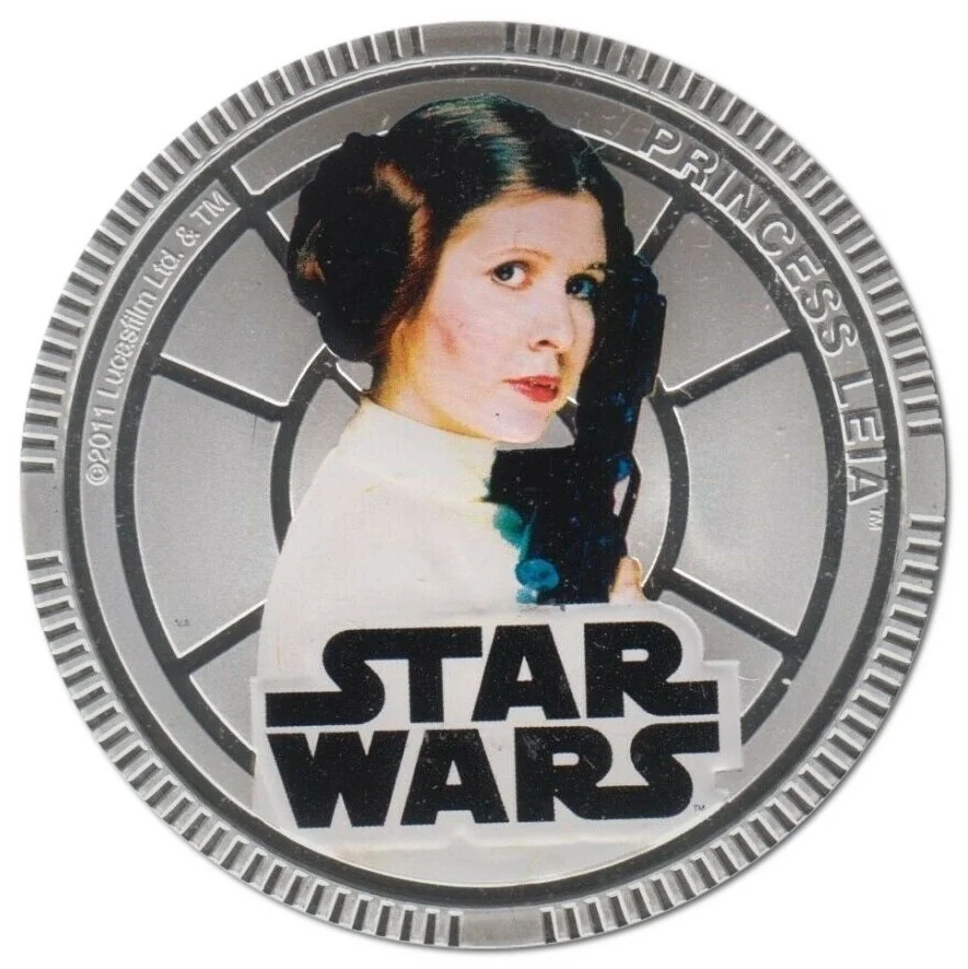 Colorized Princess Leia portrait with Star Wars logo beneath.