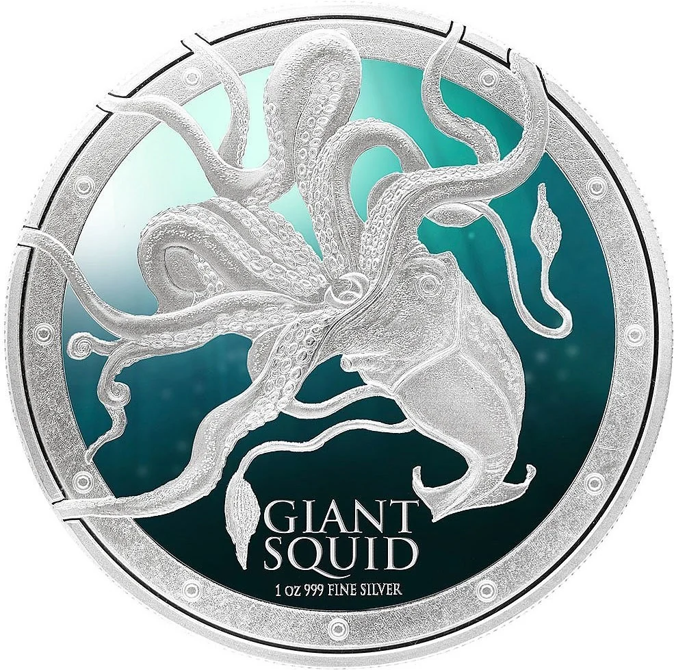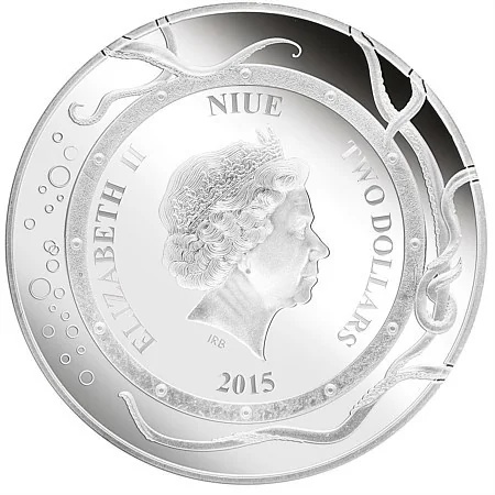 Elizabeth II bust right, date within circle, squid tentacles encircling.
