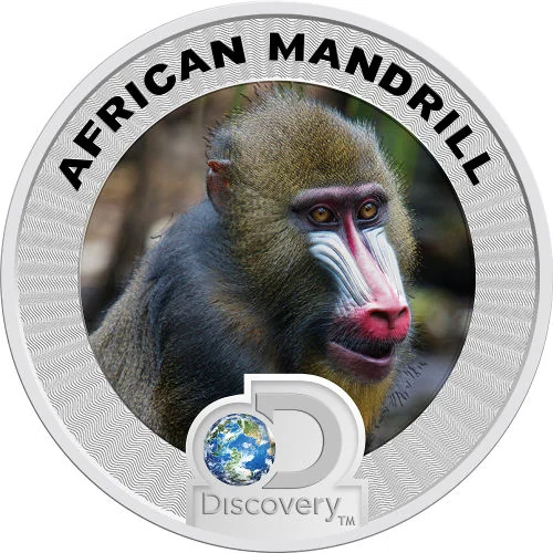 Colorized African Mandrill image with Discovery logo.