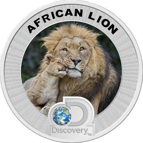 Colorized African lion image with Discovery logo.