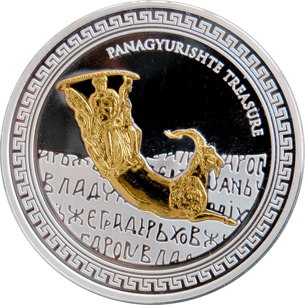 Gilded Panagyurishte Treasure golden ritual vessel with ancient Bulgarian script background.
