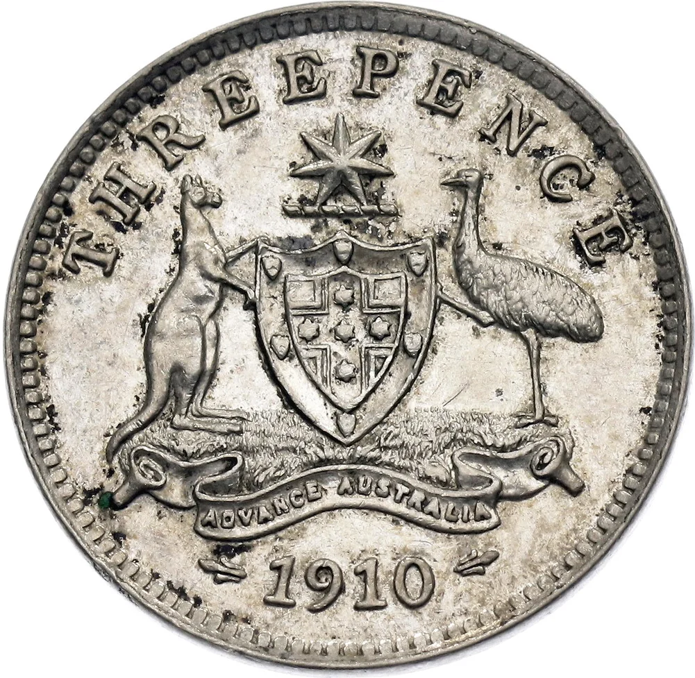 The key legislative action of 1910 was the Australian Notes Act, which gave the Commonwealth Treasury the exclusive right to issue banknotes. This effectively began the process of phasing out the notes issued by private trading banks, bringing note issuance under federal control. Furthermore, the Coinage Act of 1909 came into practical effect, introducing Australia’s first distinct national coinage. From 1910, new silver and bronze coins—featuring the image of King Edward VII and iconic Australian motifs like the kangaroo and emu—began to circulate, replacing the British and colonial coinage that had been in use.