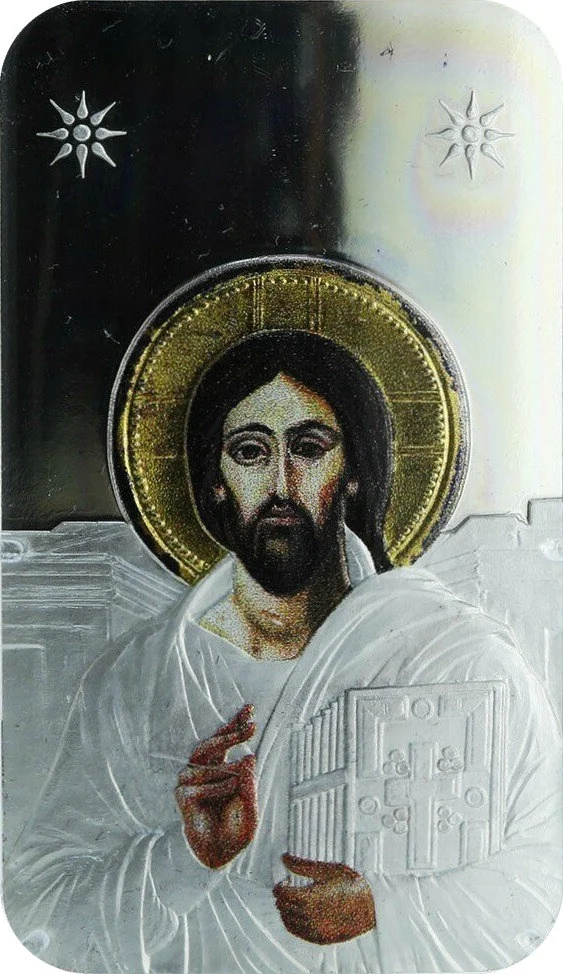 Christ with gilt and colored gospels.