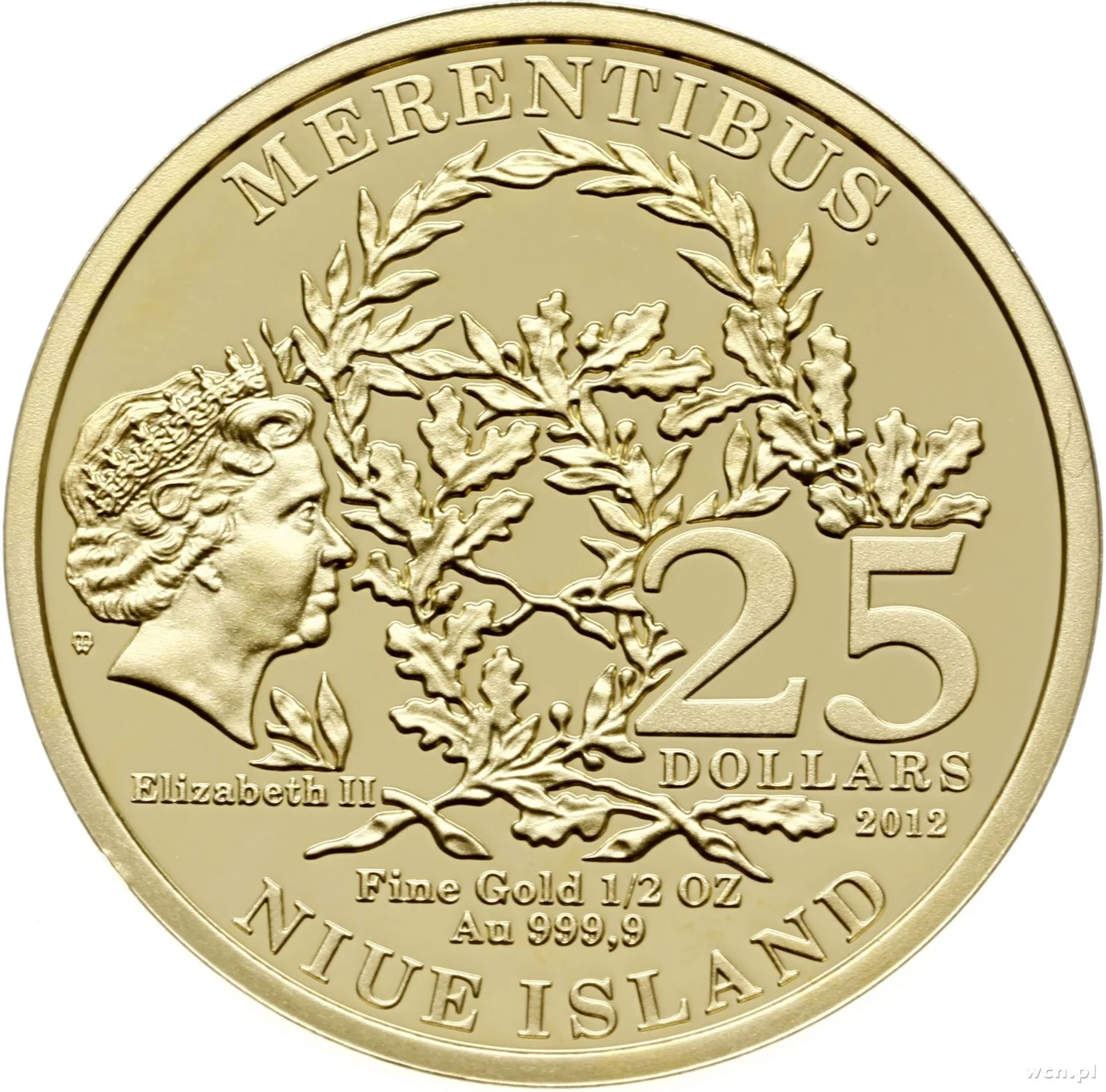 Laurel branches flank Queen Elizabeth II's effigy and the value.