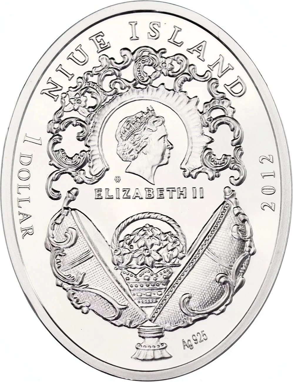 Queen Elizabeth II's effigy with the "Spring Flowers Egg" (1899-1903), containing a miniature anemone bouquet and basket.