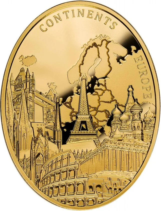 Description: Six iconic landmarks from across Europe: London's Tower Bridge, Vienna's St. Stephen's Cathedral, Cologne Cathedral, Moscow's St. Basil's Cathedral, the Eiffel Tower in Paris, the Roman Colosseum, and the Parthenon in Athens.